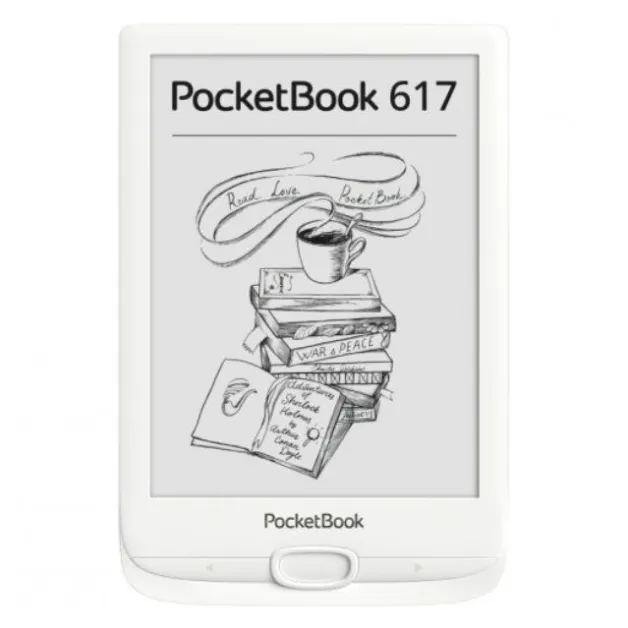 На случай дефицита освещения имеется подсветка. Роль органов управления безальтернативно отведена кнопкам под экраном. Электронная книга PocketBook 617 характеризуется «всеядностью» по отношению к файловым форматам. Поддерживается более 15 видов книжных файлов, включая самые востребованные — FB2, EPUB, MOBI, плюс предложена богатая фирменная библиотека. Мультимедиа функциональность скромная и ограничивается наличием нескольких простых игр и словаря. «Начинка» букридера представлена процессором на 1 ГГц и 512 МБ оперативной памяти, чего вполне достаточно для плавной работы ОС на базе Linux. Встроенное хранилище вмещает до 8 ГБ, но его можно ощутимо расширить за счет использоваться карт microSD (до 32 ГБ). Для передачи данных предусмотрен как проводной интерфейс microUSB, так и беспроводной модуль связи Wi-Fi 4.
