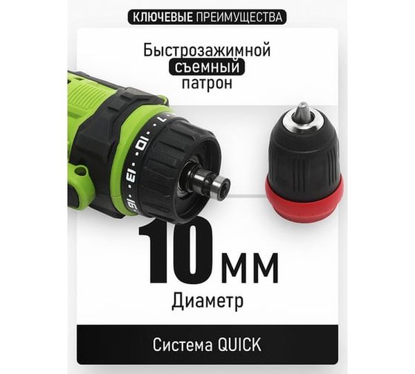 блокировка шпинделя, легкий доступ к щеткам, наличие реверса, регулировка частоты вращения, съемный патрон