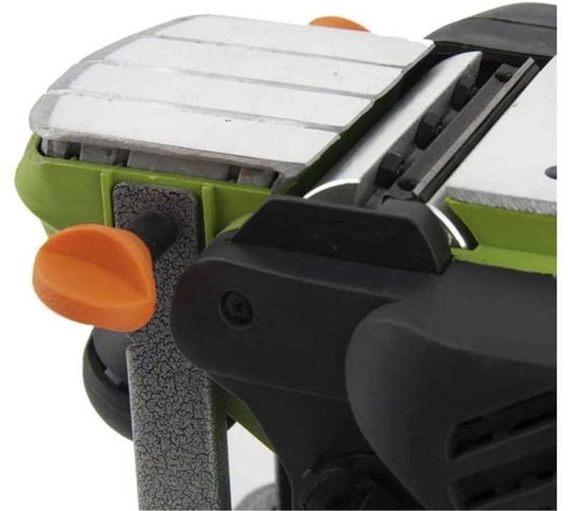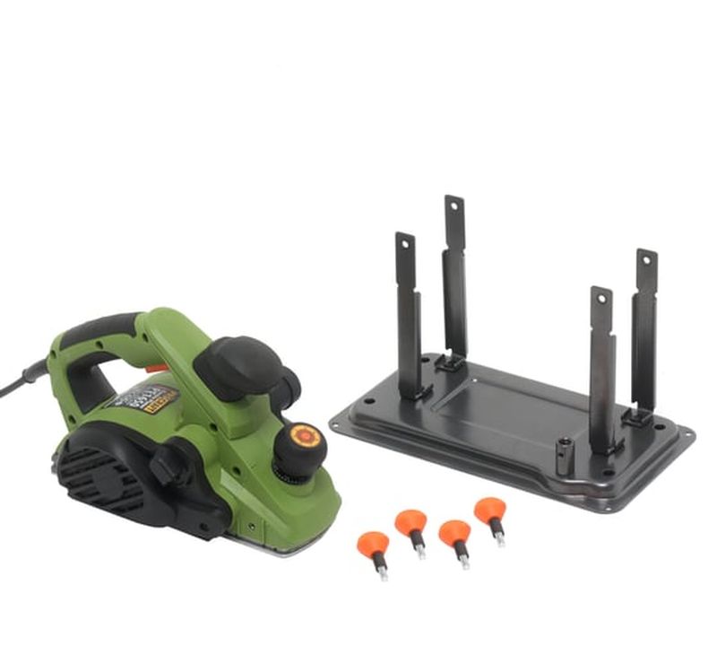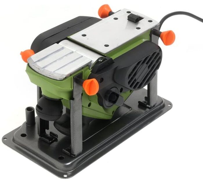 возможность стационарного крепления, выборка четверти, поддержание постоянных оборотов под нагрузкой, пылесборник в комплекте, регулировка глубины строгания
