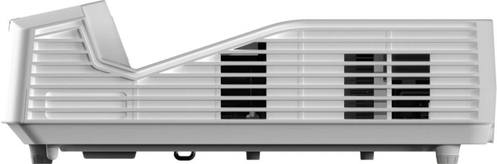 Проектор выполнен в стильном белом корпусе с компактными размерами, что упрощает его установку даже в небольших помещениях. Его современный дизайн гармонично вписывается в любой интерьер, а возможности ультракороткого проецирования позволяют размещать устройство близко к экрану без искажений. Удобный доступ к интерфейсам и элементам управления облегчает подключение и настройку.