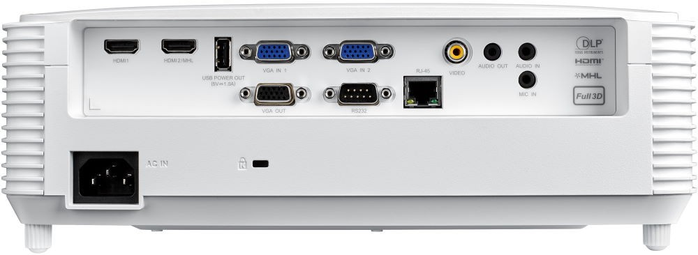 W319ST оборудован широким набором интерфейсов: два HDMI-порта (один с поддержкой MHL для подключения мобильных устройств), два VGA-входа и VGA-выход для мониторинга, композитный видеовход, аудиоразъемы 3.5 мм, USB-A (5В/1А) для питания внешних устройств (например, беспроводных адаптеров), а также RS-232 для интеграции в системы автоматизации. Это делает проектор универсальным и совместимым с большинством современных и устаревших источников сигнала — ноутбуками, ПК, документ-камерами и медиаплеерами.