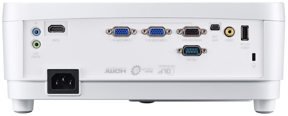 В проекторе есть все необходимые порты: HDMI, VGA, композитный вход и аудиоразъёмы.