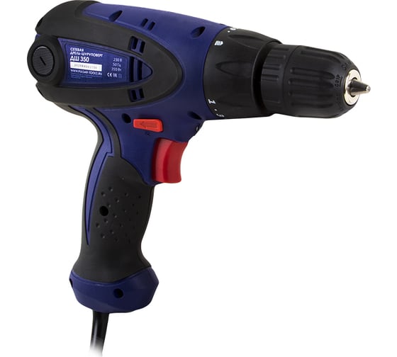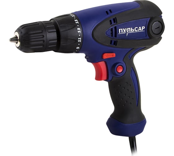 Быстрозажимной патрон - для простой смены оснастки, Легкий доступ к щеткам – удобство самостоятельного обслуживания, Независимость от заряда батареи и, соответственно, большая производительность без простоев для зарядки, Регулировка частоты вращения ПУЛЬСАР ДШ 350 792-223 для точной настройки под разные материалы, Функция реверса упрощает выведение застрявшего в материале сверла