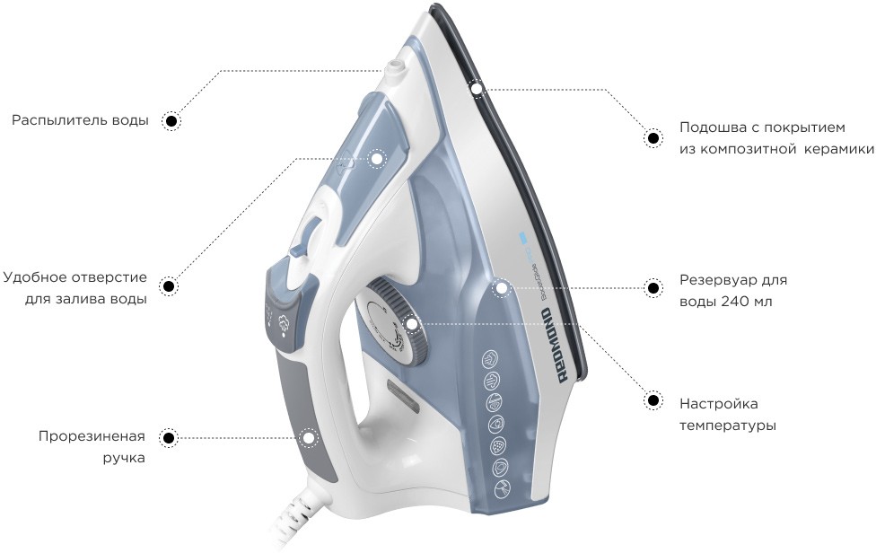 подача пара, вертикальное отпаривание, самоочистка от накипи, противокапельная система