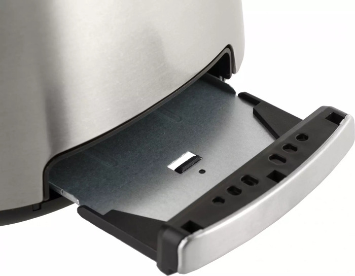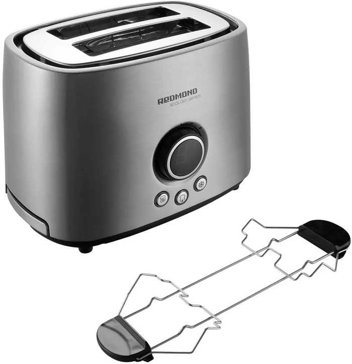 автоцентрирование тостов, выдвижной (съемный) лоток для крошек, отсек для хранения шнура, подогревание булочек, разморозка и обжаривание
