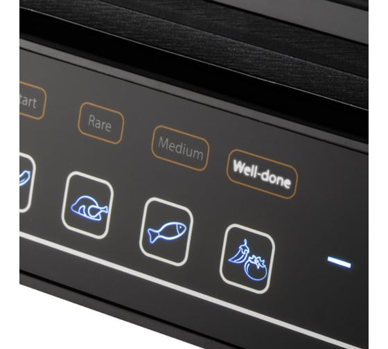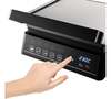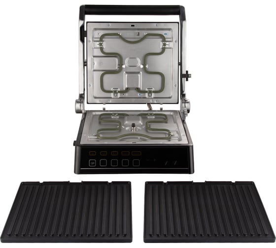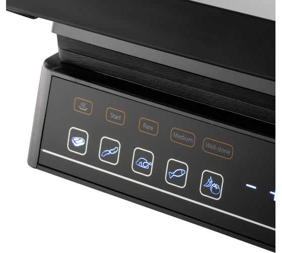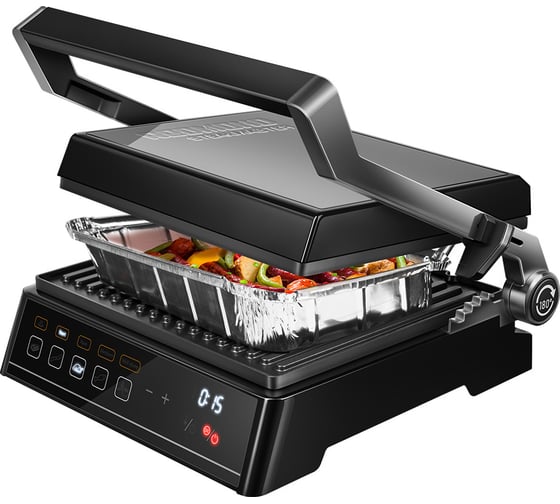 автоматическое отключение, антипригарное покрытие, дисплей, индикатор нагрева, лоток для жира и сока, открытие на 180°/положение барбекю, регулировка температуры, съемные пластины, термоизолированный корпус, управление со смартфона