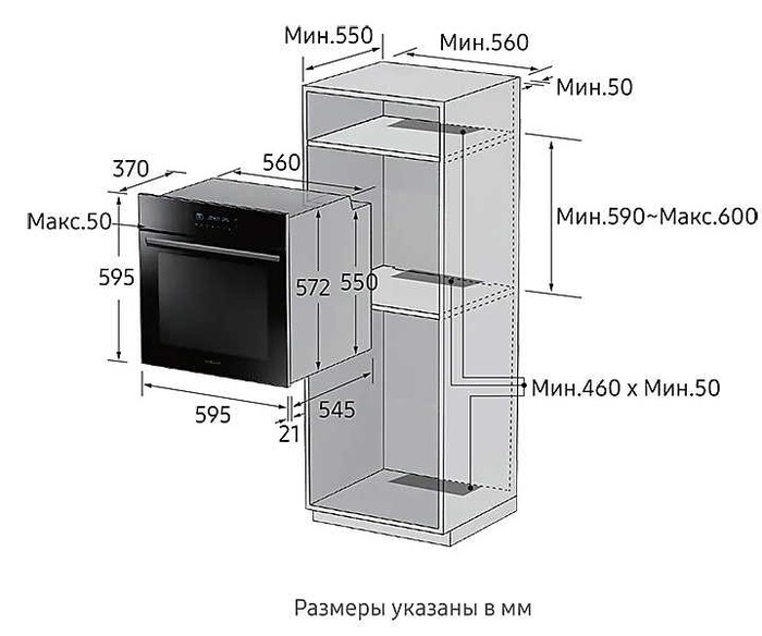 Размеры для встраивания ВхШхГ