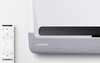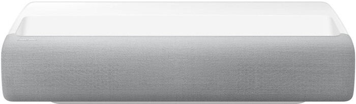 Проектор выполнен в элегантном белом корпусе с минималистичным дизайном и матовой поверхностью, которая не только приятна на ощупь, но и устойчива к загрязнениям и отпечаткам. Компактные размеры и низкий профиль позволяют без труда разместить устройство прямо под экраном или стеной — ведь проектор рассчитан на ультракороткое расстояние проекции (около 11 см от поверхности для 120-дюймового изображения). Корпус оснащён вентиляционными отверстиями для эффективного охлаждения без лишнего шума.