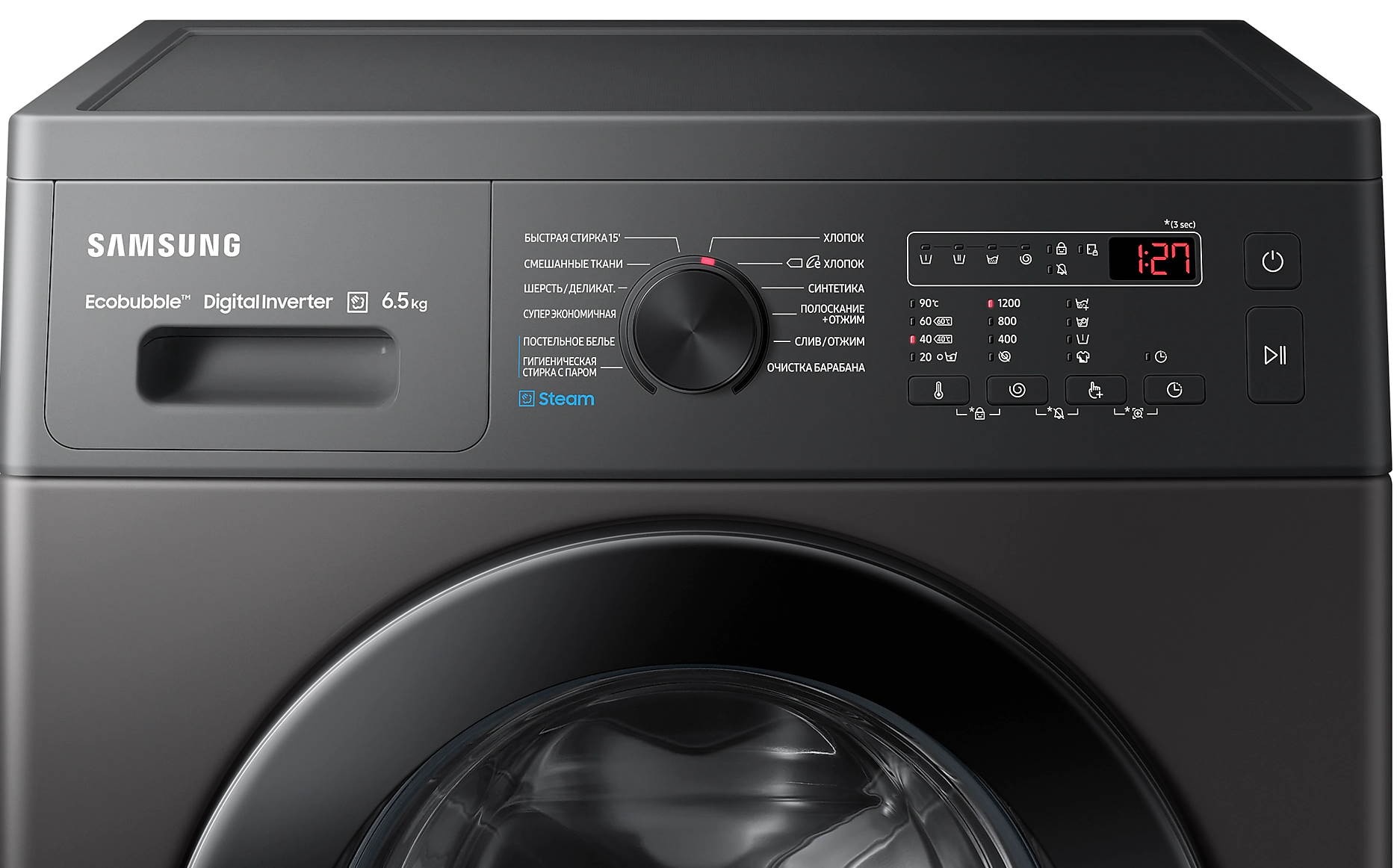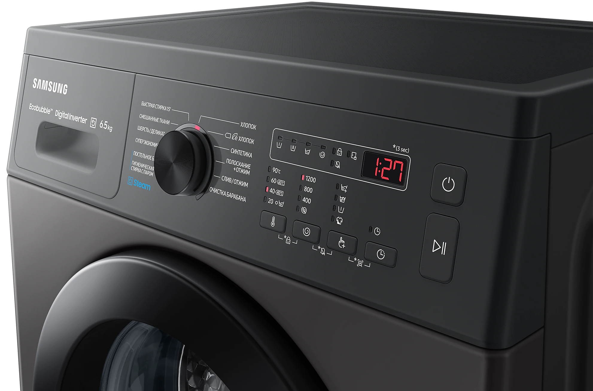 Быстрая стирка, Дополнительное полоскание, Отжим, Стирка деликатных тканей, Стирка синтетики, Стирка смешанных тканей, стирка паром