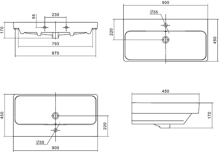900x450x170 мм