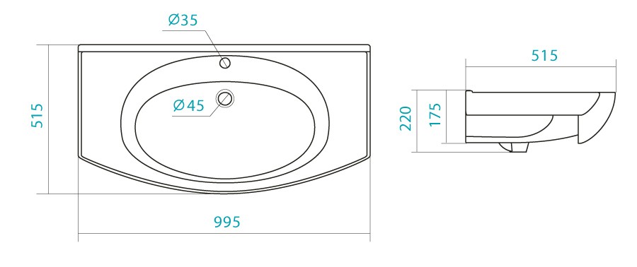 995х515х220 мм