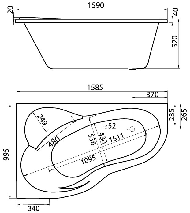 угловая разносторонняя / левая / правая