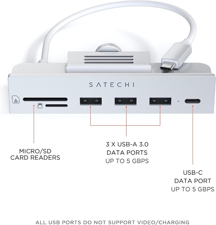 Satechi Aluminum Type C Clamp HUB FOR Imac 24
