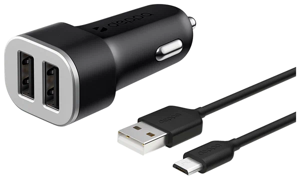 Сетевое зарядное устройство Deppa 11283, 2 USB 2.4А + кабель micro USB, черный