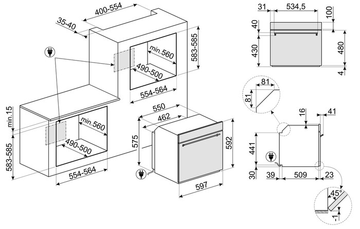 Размеры для встраивания ВхШхГ