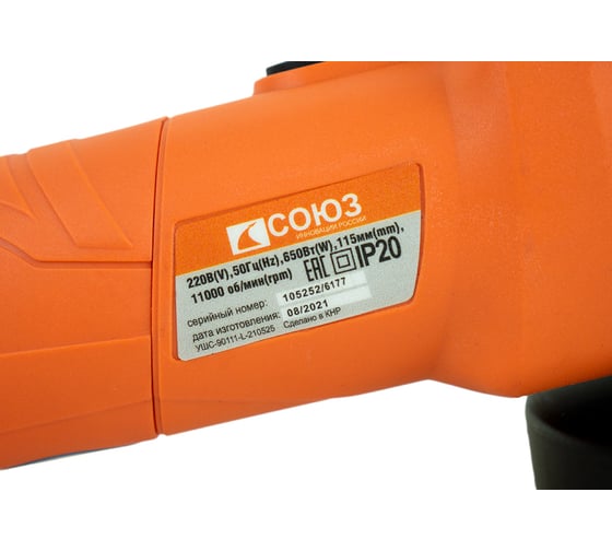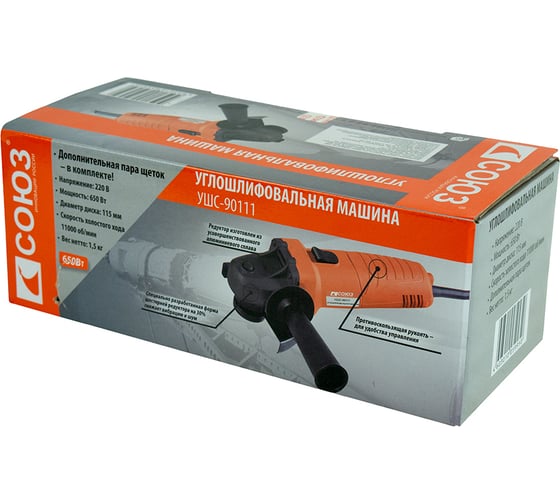 Вентиляционные отверстия для эффективного теплоотвода, Долгий срок службы, Качественное исполнение., Простота применения углошлифовальной машины Союз УШС-90111, Удобная работа двумя руками