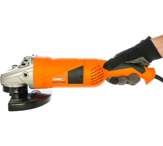Боковая рукоятка для лучшего контроля над СПЕЦ БШУ-2100 СПЕЦ-3035, Кожух диска защищает оператора от искр и пыли, Мощный и надежный двигатель «Марафонец», Наличие удобной рукоятки и широкой клавиши включения обеспечивают комфортную работу.