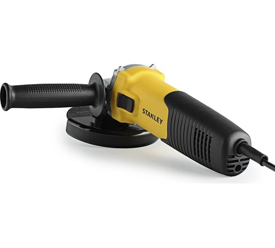 Блокировка шпинделя - для простой смены оснастки, Дополнительная рукоятка - для надежного удержания инструмента., Косозубые шестерни в конструкции редуктора обеспечивают низкий уровень шума и вибрации, Продуманная вентиляция - для долгого срока службы угловой шлифмашины Stanley STGS9115, Производительный мотор