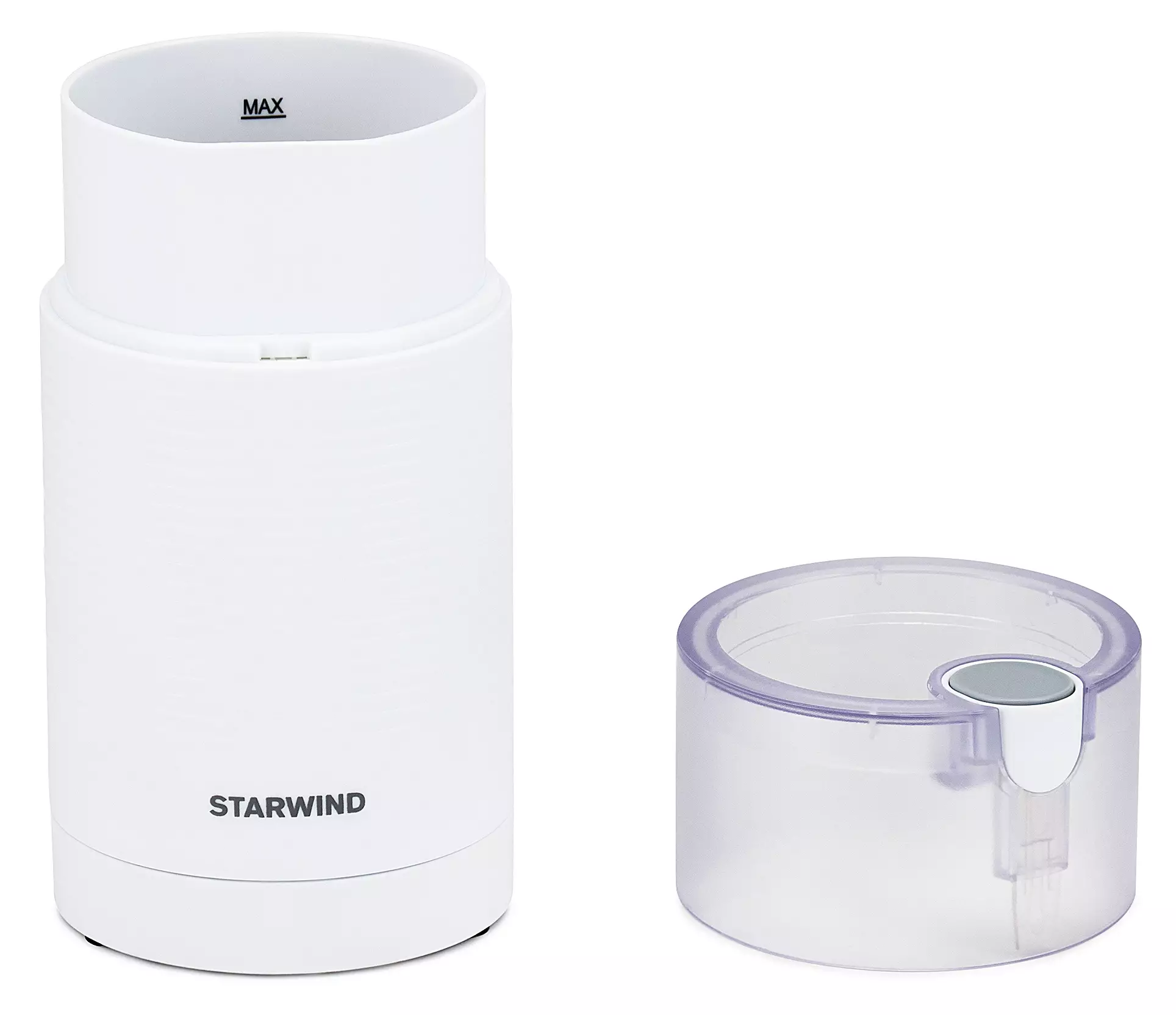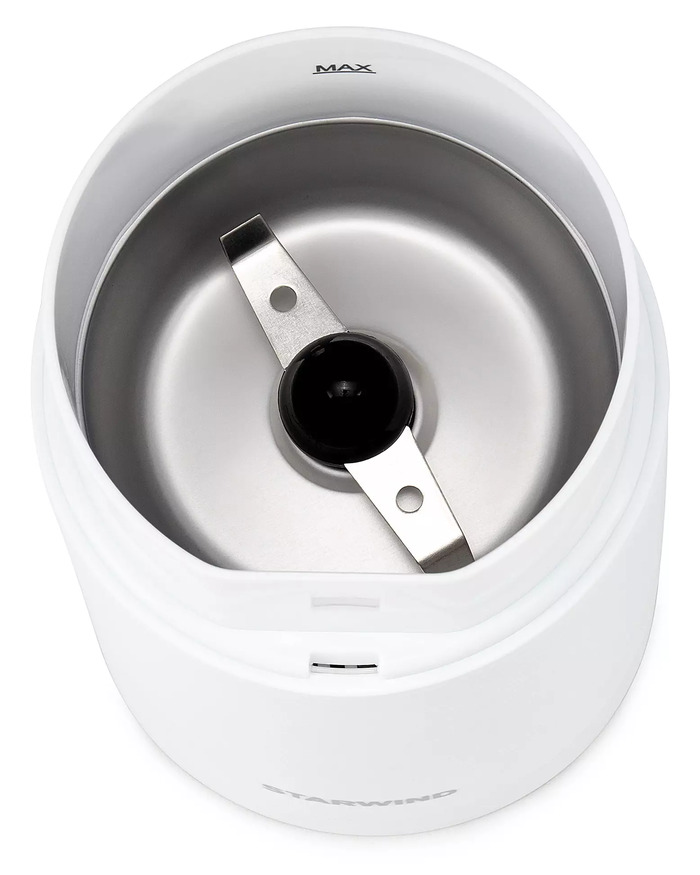 Кофемолка Starwind SGP7212, Белый — компактное и функциональное устройство для быстрой подготовки молотого кофе. Простая конструкция и понятное управление делают прибор удобным в использовании для тех, кто ценит лаконичность и предсказуемость результата.