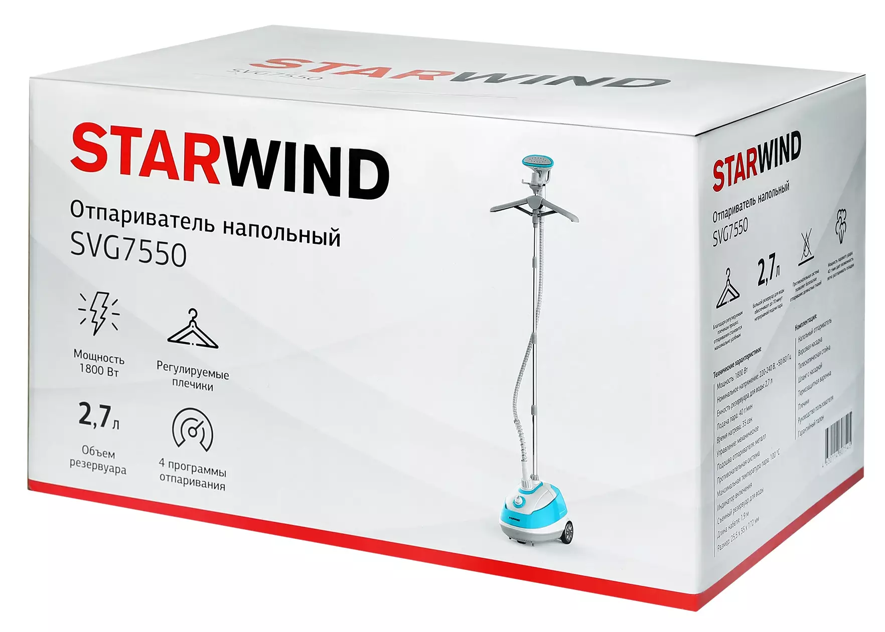 Основные характеристики Отпаривателя Starwind SVG7550, Белого/бирюзового