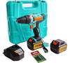2 аккумулятора - для работы без простоев, Li-lon технология: без эффекта памяти, без саморазряда, с повышенной плотностью энергии, Аккумуляторная технология избавляет оператора от необходимости следить за шнуром питания, Быстрая зарядка (всего за один час), Быстрозажимной патрон - для простой смены оснастки, Динамический тормоз - для моментальной остановки вращения патрона, Кейс - для удобства хранения и транспортировки инструмента и принадлежностей, Регулировка частоты вращения - для точной настройки под разные материалы, Светодиодная подсветка - для работы при плохом освещении, Удобная рукоятка - для комфортного рабочего процесса и меньшей усталости, Функция реверса упрощает выведение застрявшего в материале сверла