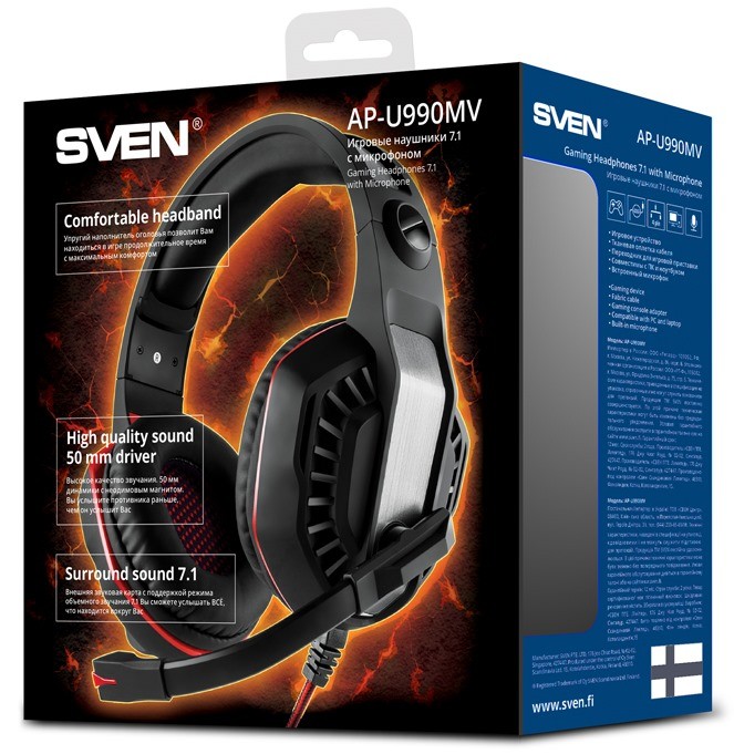Гарнитура SVEN AP-U990MV совместима с ПК и ноутбуками с операционными системами Windows и macOS. Подключение осуществляется через USB, что позволяет использовать встроенную внешнюю звуковую карту с объемным звуком 7.1.