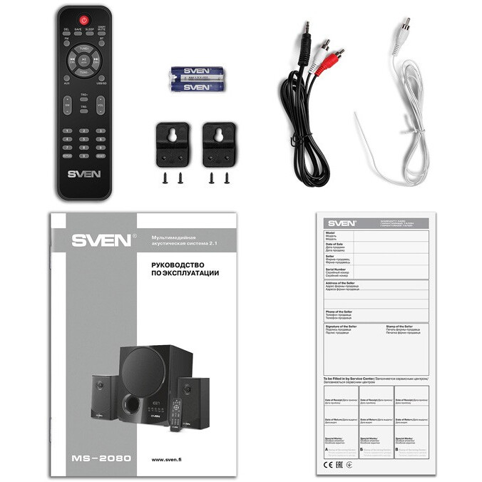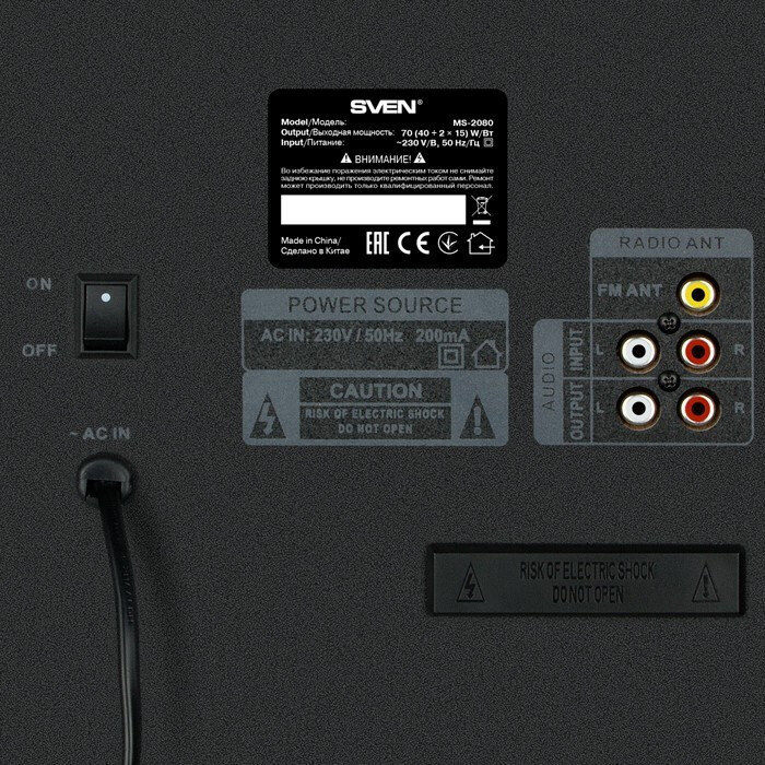Sven MS-2080 отличается универсальностью подключения и продуманным набором элементов управления, которые сокращают время на настройку. Наличие USB, SD и Bluetooth позволяет быстро переключаться между источниками без дополнительных адаптеров.