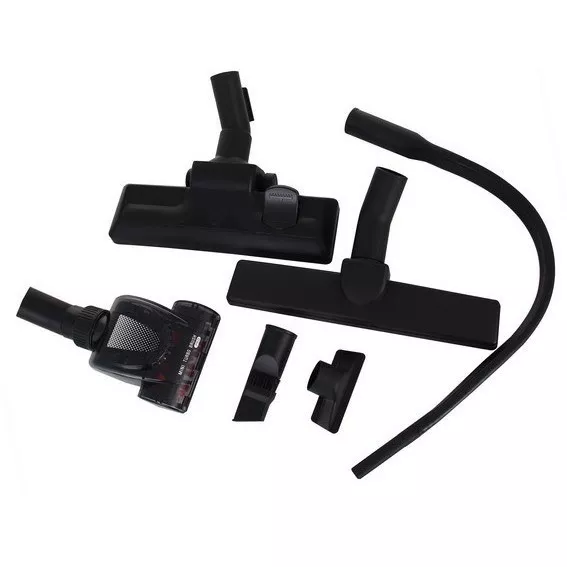 Комплект насадок включает специализированные элементы для разных типов поверхностей ламината и паркета, универсальная насадка для сухой уборки, щелевая и пылевая. Это позволяет эффективно работать с коврами, мягкой мебелью и труднодоступными участками. Телескопическая труба регулировки длины обеспечивает комфортную работу для пользователей разного роста.