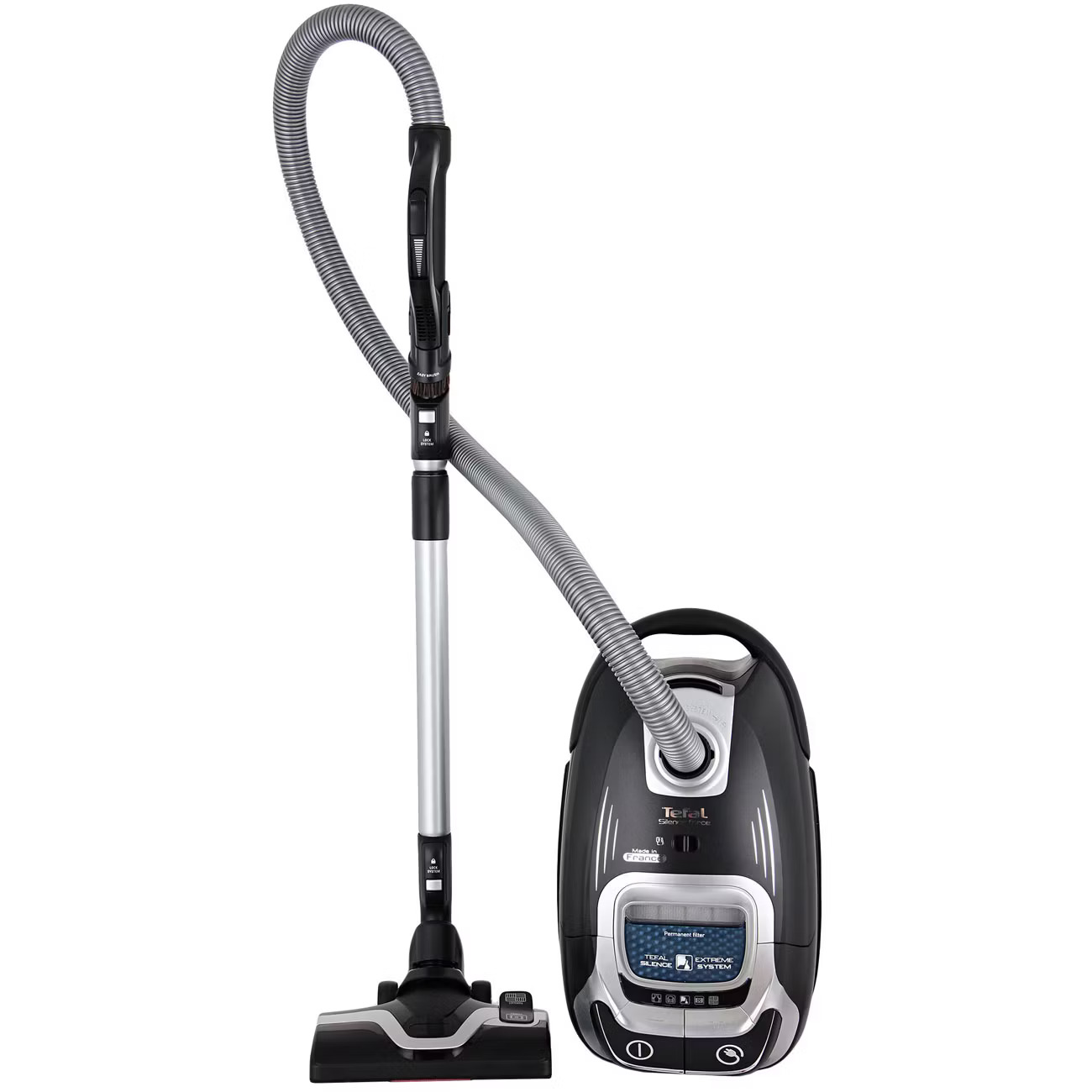 Пылесос Tefal Silence Force TW7475, Черный представляет собой современное решение для эффективной сухой уборки в жилых и офисных помещениях. Он сочетает функциональность с удобством использования, обеспечивая качественную очистку поверхностей благодаря продуманной конструкции и оптимальному набору насадок.