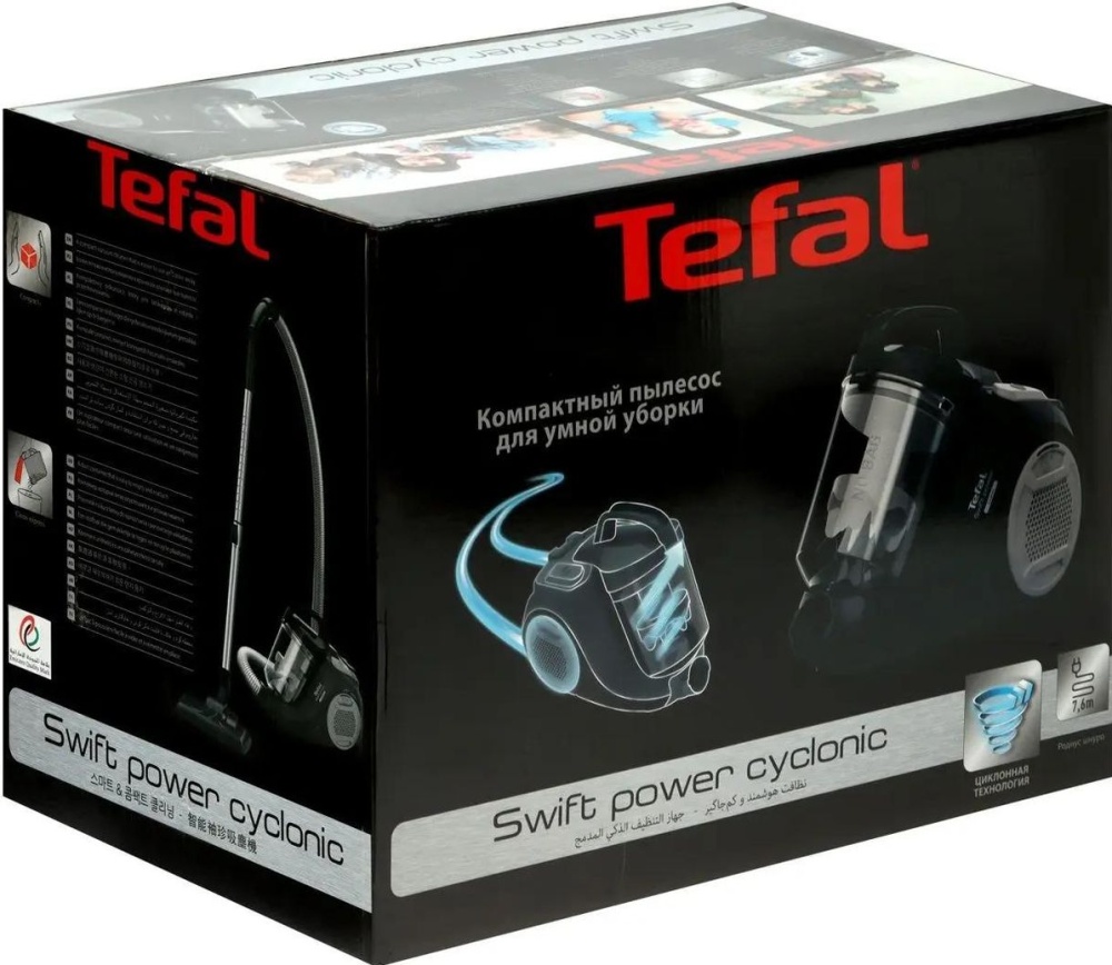 Пылесос Tefal Swift Power Cyclonic TW2925, Черный выделяется своими характеристиками, что делают его заметным среди других вариантов. Прежде всего, это сбалансированное сочетание мощности всасывания и эффективных фильтров, удобства и функциональности аксессуаров, а также эргономичный дизайн в компактных габаритах.