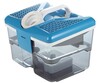 Для пылесоса предусмотрены различные HEPA фильтры, что упрощает обслуживание и замену расходных материалов. Вес устройства составляет 7 грамм, цвет – сочетание белого с голубым, придающее современный и аккуратный внешний вид.
