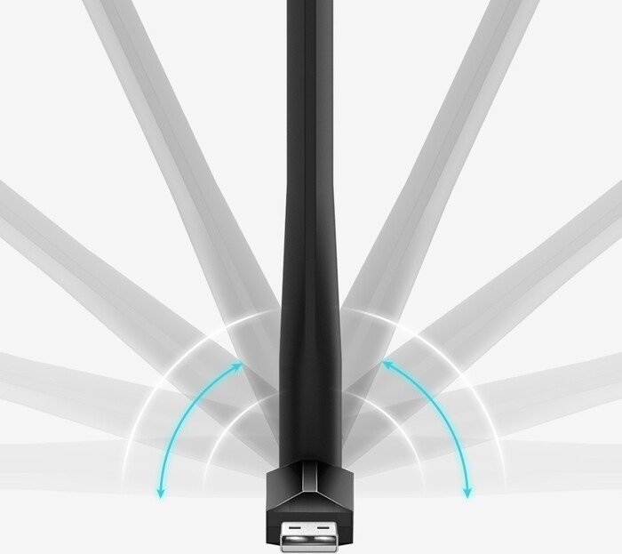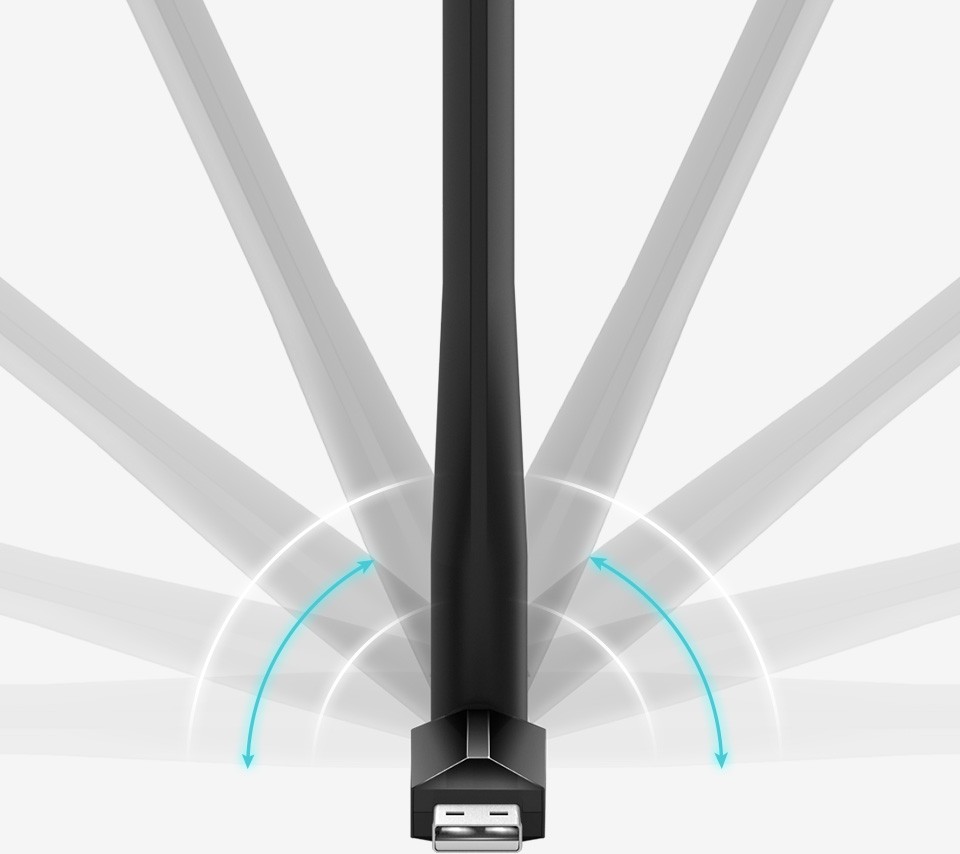 Двухдиапазонный беспроводный Wi-Fi-адаптер с интерфейсом USB и поддержкой широкого круга стандартов передачи данных «по воздуху» 802.11a/b/g/n/ас. Состоит из компактного корпуса, совмещенного с USB-разъемом и довольно высокой поворотной антенны, положение которой можно настраивать в двух плоскостях для улучшения качества связи с роутером. Именно благодаря этой антенне беспроводный адаптер TP-LINK Archer T2U обеспечивает более уверенный прием/передачу Wi-Fi-сигнала в сложных условиях, чем малогабаритные устройства со встроенной антенной.