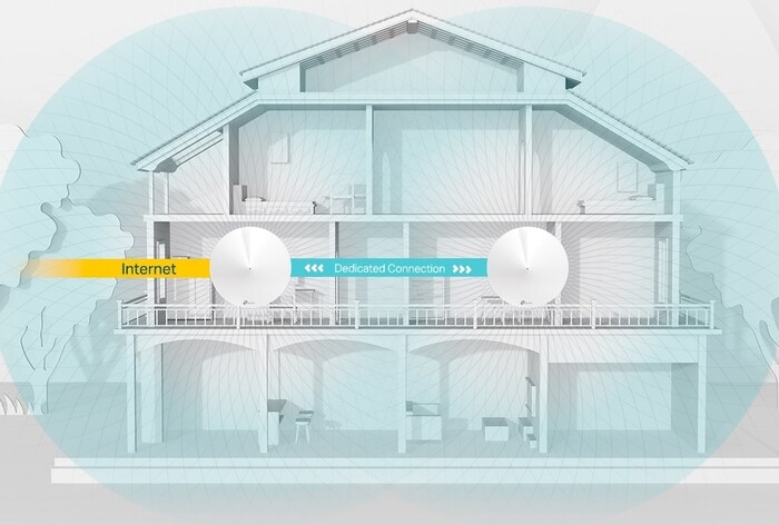 Производительная двухдиапазонная и трехканальная беспроводная MESH-система, ориентированная на создание бесшовной сети Wi-Fi 5, обслуживающей помещения площадью до 420 м². Комплект поставки включает в себя два блока, каждый из которых оснащен WAN- и LAN-портом Gigabit Ethernet с пропускной способностью до 1 Гбит/с. Относится к роутерам класса АС2200, обеспечивающим высокую теоретическую скорость беспроводных подключений (в диапазоне 2.4 ГГц можно получить до 400 Мбит/с, а в двух 5-гигагерцовых до 867 Мбит/с в каждом).