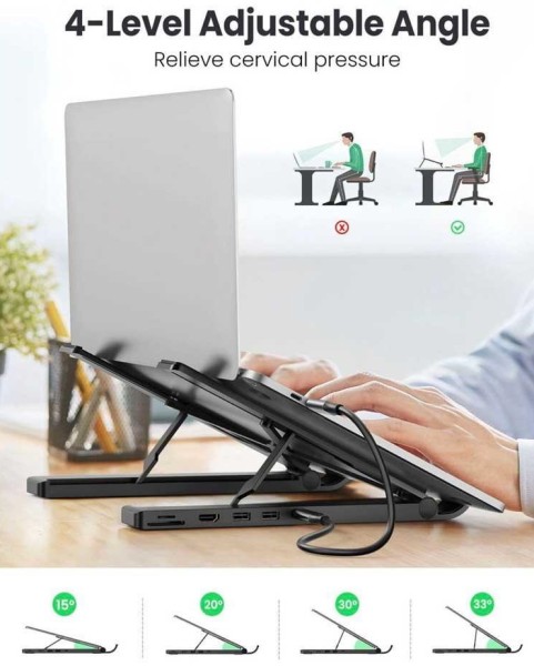 USB-хаб, регулировка наклона, фиксаторы ноутбука