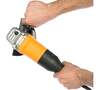 Благодаря электронной регулировке оборотов мастер может подстроиться под тип и толщину материала, Блокировка кнопки включения уберегает от непреднамеренного запуска инструмента, Двойная изоляция провода гарантирует электробезопасность работы с УШМ, Есть функция блокировки шпинделя. Она нужна, чтобы быстрее можно было сменить диск, Зоны хвата прорезинены, что исключает выскальзывание инструмента из рук, Кожух регулируется без использования дополнительных инструментов, Максимальная скорость вращения диска – 8 000 об/мин, Металлический редуктор эффективно отводит тепло и легко выдерживает высокие нагрузки, Простая установка защитного кожуха, Удобное удержание машины за счет компактности корпуса, Фланцевый ключ для его фиксации предусмотрен в комплекте, Чтобы мастеру было удобно работать в любом положении, дополнительную рукоять можно переставлять – она закрепляется в трех позициях