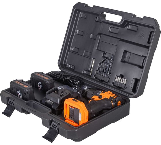 блокировка шпинделя, зарядное устройство в комплекте, индикатор уровня зарядки на корпусе дрели, наличие подсветки, наличие реверса, универсальный аккумулятор, крепление на ремень, тормоз двигателя