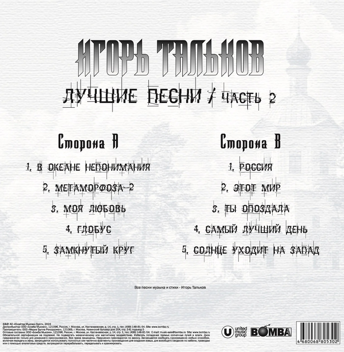 Виниловая пластинка Игорь Тальков – Лучшие Песни – Часть 2 LP
