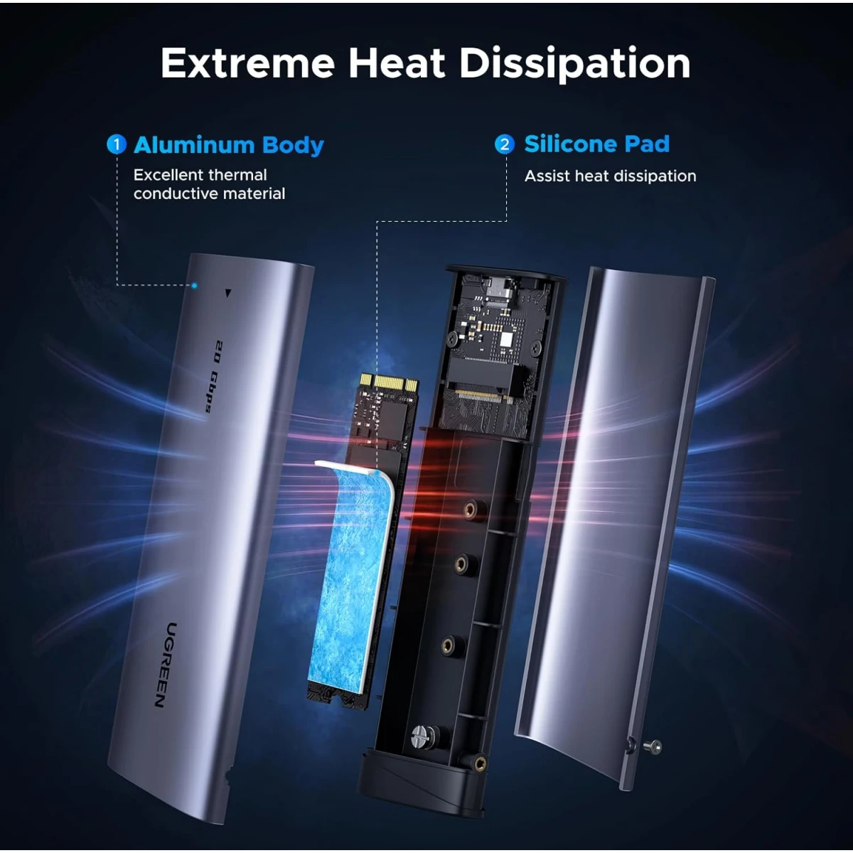 Внешний корпус для SSD M.2 UGREEN NVMe/SATA SSD Enclosure 20 Гбит/с (CM767), Темно-серый