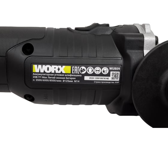 Аккумуляторная угловая шлифмашина WORX Professional WU809.3, 125 мм, 8500 об/мин