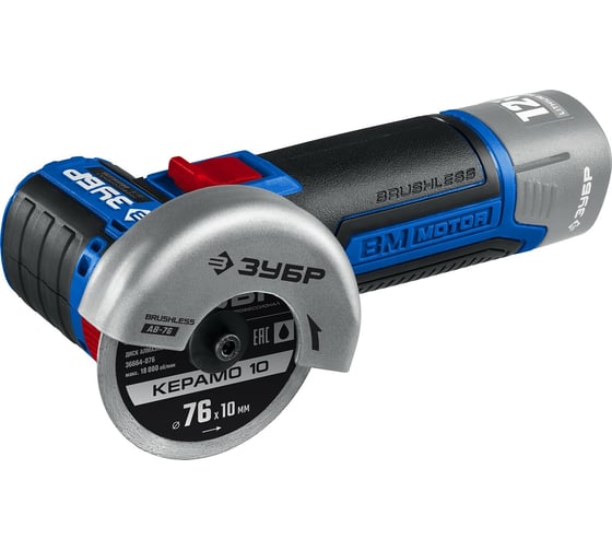 Быстрозарядное интеллектуальное устройство с системой Ультра, Высокий КПД благодаря максимально эффективному преобразованию электромагнитной энергии в механическую, Высокий крутящий момент Зубр 20В AB-125-42, Две батареи большой емкости в комплекте для безостановочной работы, Контроллер двигателя позволяет гибко регулировать крутящий момент и поддерживать его на максимальном уровне в широком диапазоне оборотов, Корпус защищен от попадания пыли металлическими сетками, Лабиринтное уплотнение всех шариковых подшипников создает непроницаемый для пыли воздушный барьер, Литий-ионная технология без эффекта памяти и саморазряда, Низкий уровень шума, Низкое энергопотребление, вследствие чего инструмент работает до 4 раз дольше на одном заряде батареи, Отсутствие постоянных перекоммутаций в коллекторе и, соответственно, отсутствие нагрева и потерь из-за переходных сопротивлений, Плата управления батареи с технологией Z-control, Поворотная с шагом 90° голова позволяет настроить изделие под левую руку или для резки, Поддержание оборотов помогает работать без потери производительности при любой нагрузке, Специально разработанный корпус редуктора для улучшения теплоотвода и обеспечения прочности самого нагруженного узла, Фирменная дополнительная рукоятка, устанавливаемая в 2 положениях, Фланцы из разного материала предотвращают чрезмерное затягивание диска при работе