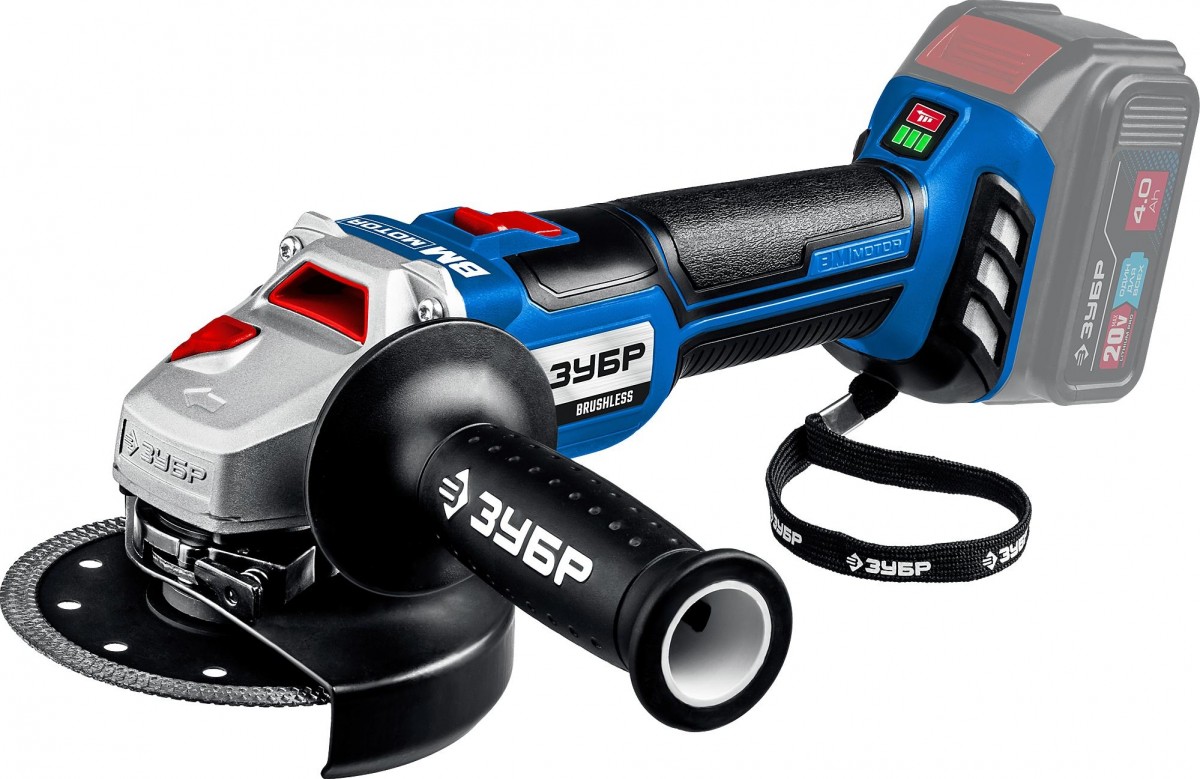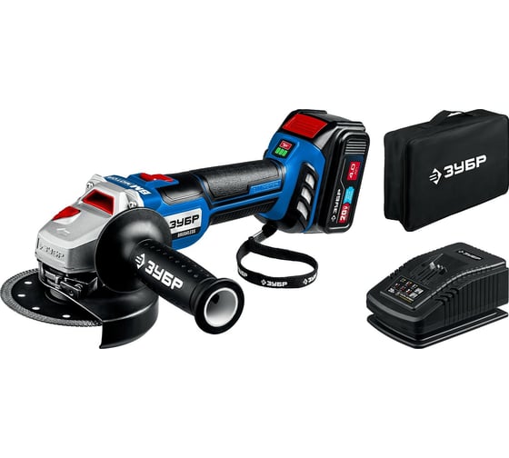 Аккумуляторная бесщеточная угловая шлифмашина ЗУБР Профессионал AB-125-42, 125 мм, 10000 об/мин, 20 В