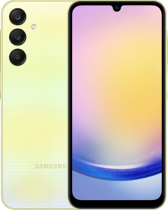 Galaxy A55 5G — ещё одна модель среднего класса, доступная в жёлтом цвете. Смартфон оснащён 6,6-дюймовым Super AMOLED дисплеем с разрешением FHD+ и частотой обновления 120 Гц. Процессор Exynos 1480 обеспечивает хорошую производительность, а основная камера на 50 МП позволяет делать качественные снимки.Устройство поддерживает сети 5G и обладает аккумулятором ёмкостью 5000 мА·ч с поддержкой быстрой зарядки.