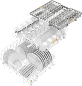 В некоторых моделях встраиваемых посудомоечных машин доступна третья корзина, которая располагается на верхнем уровне. Она используется для размещения мелкой посуды, такой как столовые приборы, крышки, небольшие чашки и так далее. Она позволяет освободить место в других корзинах и более эффективно организовать пространство внутри машины.